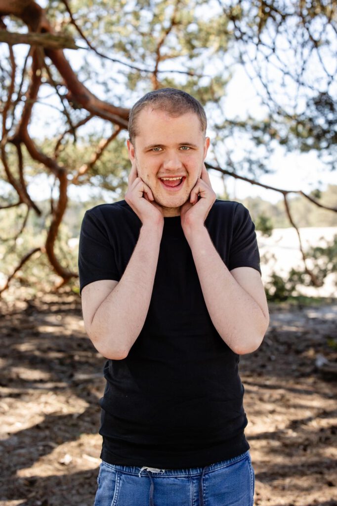 In 2020 zat Koen thuis. Hij was continu alert, zat hoog in de stress en zag alles als een bedreiging. We wisten niet meer hoe we hem perspectief konden bieden. Via via hoorde ik gelukkig over een cliëntondersteuner in het westen van het land. Via hem ben ik in contact gekomen met een orthopedagoog, Erwin, die ons heeft doorverwezen naar Studio 3. Het mooie aan zowel Erwin als Studio 3 is dat zij hun advies baseren op wat ze zien en ervaren in de praktijk, in plaats van dat ze standaard kennis uit boekjes halen. Zo geven zij iedereen om Koen heen nieuwe inzichten in hem en zijn gedrag, maar vooral ook in hoe wij het beste met hem kunnen omgaan. Dat helpt: langzaamaan daalt zijn stress en kunnen we ons weer richten op het opbouwen van positieve ervaringen.